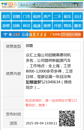 众汇上海公司招聘高德司机多名,公司提供新能源汽车,工作地点:全上海,工资8000-12000多劳多得,工资日结,驾驶证满一年且没有犯罪记录,