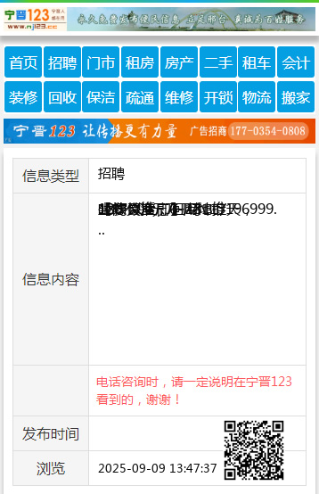 电话咨询时,请一定说明在宁晋123看到的,谢谢!