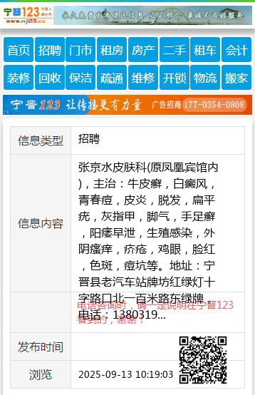 张京水皮肤科(原凤凰宾馆内),主治:牛皮癣,白癜风,青春痘,皮炎,脱发,扁平疣,灰指甲,脚气,手足癣,阳痿早泄,生殖感染,外阴瘙痒,疥疮,鸡眼,脸红,色斑,痘坑等。地址:宁晋县老汽车站牌坊红绿灯十字路口北一百米路东绿牌,电话:13803197649V同 【电话咨询时,请一定说明在宁晋123看到的,谢谢!】 |