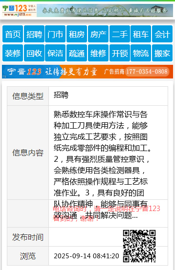 熟悉数控车床操作常识与各种加工刀具使用方法,能够独立完成工艺要求,按照图纸完成零部件的编程和加工。2,具有强烈质量管控意识,会熟练使用各类检测器具,严格依照操作规程与工艺标准作业。3,具有良好的团队协作精神,能够与同事有效沟通,共同解决问题工资待遇是7000-100004.找销售5名40周岁以内有经验者优先沟通能力良好工资待遇:3000-5000工作时间8点-12点1点30-6点联系电话1500704769115227331691 【电话咨询时,请一定说明在宁晋123看到的,谢谢!】 |