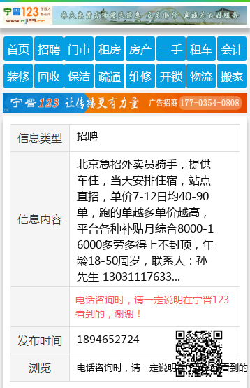 北京急招外卖员骑手,提供车住,当天安排住宿,站点直招,单价7-12日均40-90单,跑的单越多单价越高,平台各种补贴月综合8000-16000多劳多得上不封顶,年龄18-50周岁,联系人:孙先生 13031117633
