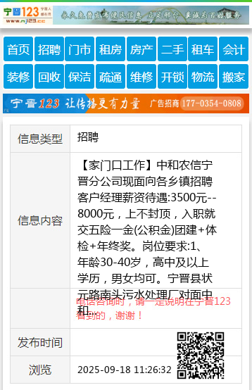 【家门口工作】中和农信宁晋分公司现面向各乡镇招聘客户经理薪资待遇:3500元--8000元,上不封顶,入职就交五险一金(公积金)团建+体检+年终奖。岗位要求:1、年龄30-40岁,高中及以上学历,男女均可。宁晋县状元路南头污水处理厂对面中和农信联系方式:18233933222 【电话咨询时,请一定说明在宁晋123看到的,谢谢!】 |