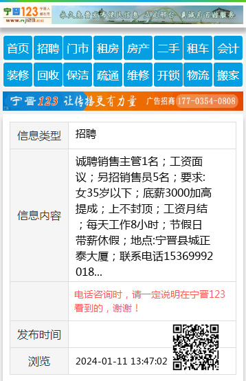 电话咨询时,请一定说明在宁晋123看到的,谢谢!