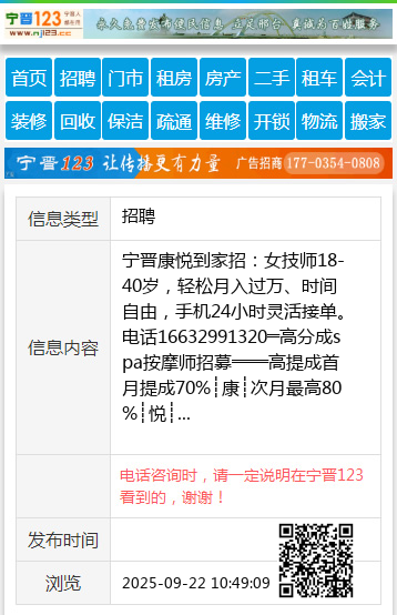 宁晋康悦到家招:女技师18-40岁,轻松月入过万、时间自由,手机24小时灵活接单。电话16632991320═高分成spa按摩师招募═══高提成首月提成70%┊康┊次月最高80%┊悦┊ 【电话咨询时,请一定说明在宁晋123看到的,谢谢!】 |
