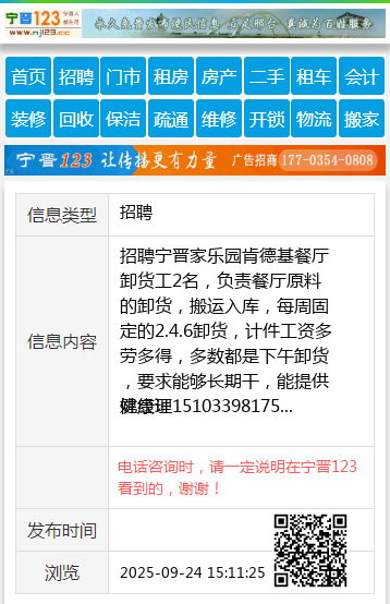 招聘宁晋家乐园肯德基餐厅卸货工2名,负责餐厅原料的卸货,搬运入库,每周固定的2.4.6卸货,计件工资多劳多得,多数都是下午卸货,要求能够长期干,能提供健康证