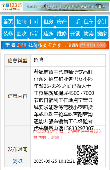 若晟商贸主营康师傅饮品旺仔系列招车销业务男女不限年龄25-35岁之间已婚人士工资底薪加提成4500~7000节假日福利工作地点宁晋县城要求能熟练驾驶小型厢货车或电动三轮车吃苦耐劳沟通能力强有销售工作经验者优先联系电话15833297307, 【电话咨询时,请一定说明在宁晋123看到的,谢谢!】 |