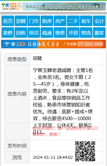 宁晋玉蝉老酒诚聘:主管1名,业务员3名。男女不限(25—45岁),身体健康,吃苦耐劳。要求:有2年及以上酒水,食品等快销品工作经验,熟悉市场营销知识者优先。待遇:底薪+提成+绩效,综合薪资4500—10000上不封顶,公休4天。联系☎️13229891187