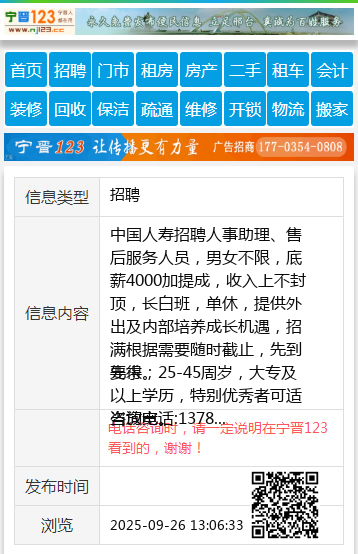 中国人寿招聘人事助理、售后服务人员,男女不限,底薪4000加提成,收入上不封顶,长白班,单休,提供外出及内部培养成长机遇,招满根据需要随时截止,先到先得。