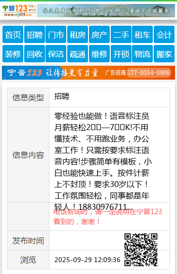 零经验也能做!语音标注员月薪轻松2️⃣—7️⃣K!不用懂技术、不用跑业务,办公室工作!只需按要求标注语音内容!步骤简单有模板,小白也能快速上手。按件计薪上不封顶!要求30岁以下!工作氛围轻松,同事都是年轻人!18830976711 【电话咨询时,请一定说明在宁晋123看到的,谢谢!】 |