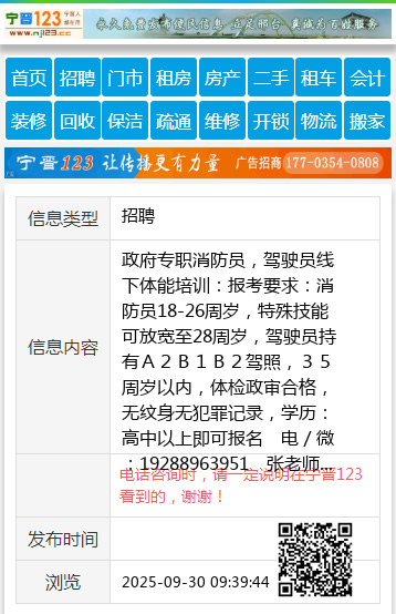 政府专职消防员,驾驶员线下体能培训:报考要求:消防员18-26周岁,特殊技能可放宽至28周岁,驾驶员持有A2B1B2驾照,35周岁以内,体检政审合格,无纹身无犯罪记录,学历:高中以上即可报名 电/微:19288963951 张老师 【电话咨询时,请一定说明在宁晋123看到的,谢谢!】 |
