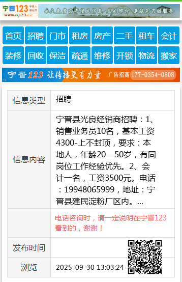 宁晋县光良经销商招聘:1、销售业务员10名,基本工资4300-上不封顶,要求:本地人,年龄20—50岁,有同岗位工作经验优先。2、会计一名,工资3500元。电话:19948065999,地址:宁晋县建民淀粉厂区内。 【电话咨询时,请一定说明在宁晋123看到的,谢谢!】 |