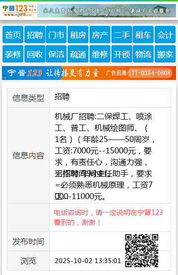 机械厂招聘:二保焊工、喷涂工、普工、机械绘图师、(1名)(年龄25——50周岁,工资:7000元--15000元,要求,有责任心,沟通力强,工作时间9小时。