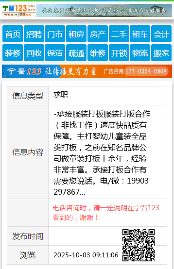 -承接服装打板服装打版合作(非找工作)速度快品质有保障。主打婴幼儿童装全品类打板,之前在知名品牌公司做童装打板十余年,经验非常丰富。承接打板合作有需要您说话。电/微:19903297867 【电话咨询时,请一定说明在宁晋123看到的,谢谢!】 |