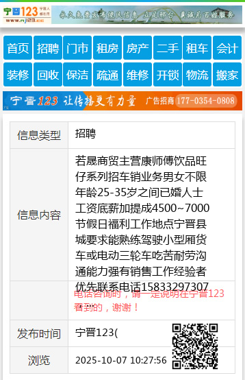 若晟商贸主营康师傅饮品旺仔系列招车销业务男女不限年龄25-35岁之间已婚人士工资底薪加提成4500~7000节假日福利工作地点宁晋县城要求能熟练驾驶小型厢货车或电动三轮车吃苦耐劳沟通能力强有销售工作经验者优先联系电话15833297307, 【电话咨询时,请一定说明在宁晋123看到的,谢谢!】 |
