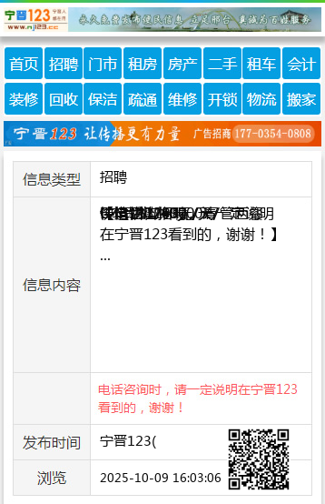 免责声明:本栏目信息由网友自行发布,宁晋123不承担任何责任!提高警惕,谨防诈骗!做推广、做信息置顶!请加宁晋123客服微信:ningjin009