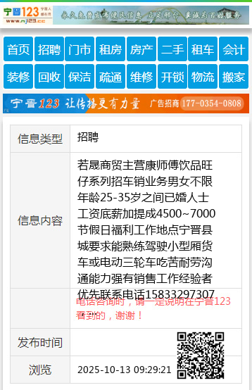 若晟商贸主营康师傅饮品旺仔系列招车销业务男女不限年龄25-35岁之间已婚人士工资底薪加提成4500~7000节假日福利工作地点宁晋县城要求能熟练驾驶小型厢货车或电动三轮车吃苦耐劳沟通能力强有销售工作经验者优先联系电话15833297307, 【电话咨询时,请一定说明在宁晋123看到的,谢谢!】 |