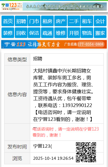 | 防骗提醒: | 宁晋123(www.nj123.cc)提醒您:手工活、网络兼职、刷单,都是骗子!凡以各种名义收取费用的都是骗子!找工作是往兜里挣钱,让你往外掏钱的都是骗子!异地招聘请提高警惕,谨防诈骗! |