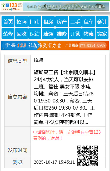 工期:工期截止到11月20日 【电话咨询时,请一定说明在宁晋123看到的,谢谢!】 |