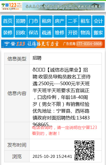 | 防骗提醒: | 宁晋123(www.nj123.cc)提醒您:手工活、网络兼职、刷单,都是骗子!凡以各种名义收取费用的都是骗子!找工作是往兜里挣钱,让你往外掏钱的都是骗子!异地招聘请提高警惕,谨防诈骗! |