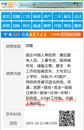 国企中国人寿招录:售后服务人员、人事专员、医保宣传员、储备主管。