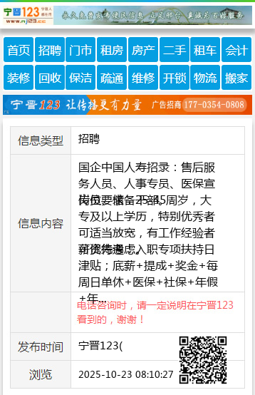 国企中国人寿招录:售后服务人员、人事专员、医保宣传员、储备干部。