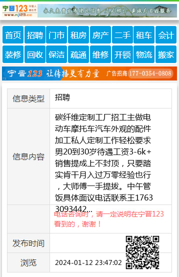 碳纤维定制工厂招工主做电动车摩托车汽车外观的配件加工私人定制工作轻松要求男20到30岁待遇工资3-6k+销售提成上不封顶,只要踏实肯干月入过万零经验也行,大师傅一手提拔。中午管饭具体面议电话联系王17633093442 【电话咨询时,请一定说明在宁晋123看到的,谢谢!】 |