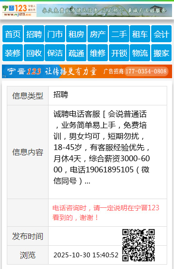 电话咨询时,请一定说明在宁晋123看到的,谢谢!