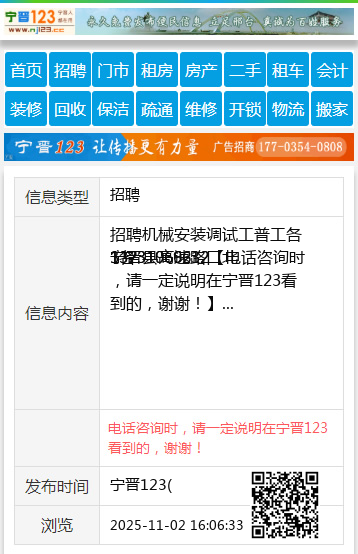 免责声明:本栏目信息由网友自行发布,宁晋123不承担任何责任!提高警惕,谨防诈骗!做推广、做信息置顶!请加宁晋123客服微信:ningjin009