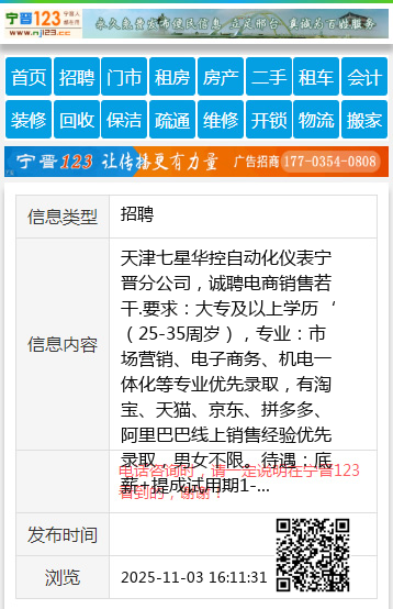 天津七星华控自动化仪表宁晋分公司,诚聘电商销售若干.要求:大专及以上学历‘(25-35周岁),专业:市场营销、电子商务、机电一体化等专业优先录取,有淘宝、天猫、京东、拼多多、阿里巴巴线上销售经验优先录取,男女不限。待遇:底薪+提成试用期1-3个月.3000/月+提成.要求踏实肯干,有上进心..每天工作八个小时,五险.节假日全休.实行单双休,工作地点:方大科技园,如有想法可以与我们联系,联系电话:13752055332刘经理、17867425860罗经理、 【电话咨询时,请一定说明在宁晋123看到的,谢谢!】 |