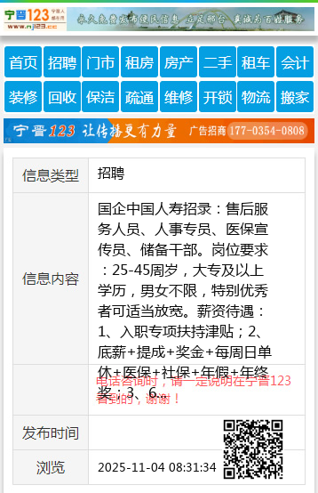 国企中国人寿招录:售后服务人员、人事专员、医保宣传员、储备干部。