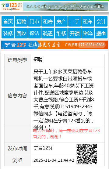 只干上午多多买菜招聘带车司机一名要求自带厢货车或者面包车,年龄40岁以下工资计件,配送区域童泰周边以及大曹庄线路,综合工资6千到8千,有意联系15194932943微信同步 【电话咨询时,请一定说明在宁晋123看到的,谢谢!】 |