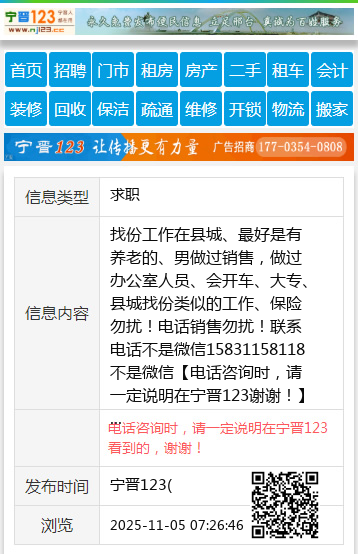 找份工作在县城、最好是有养老的、男做过销售,做过办公室人员、会开车、大专、县城找份类似的工作、保险勿扰!电话销售勿扰!联系电话不是微信15831158118不是微信 【电话咨询时,请一定说明在宁晋123看到的,谢谢!】 |