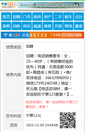 招聘:电话销售