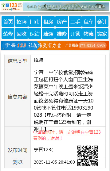 宁晋二中学校食堂招聘洗碗工包括打扫个人窗口卫生洗菜摘菜中午晚上盛米饭活少轻松干完活随时可以走工资面议必须得有健康证一天100管吃不管住电话19903290028 【电话咨询时,请一定说明在宁晋123看到的,谢谢!】 |