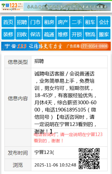 诚聘电话客服/会说普通话,业务简单易上手,免费培训,男女均可,短期勿扰,18-45岁,有客服经验优先,月休4天,综合薪资3000-6000,电话19061895105(微信同号) 【电话咨询时,请一定说明在宁晋123看到的,谢谢!】 |