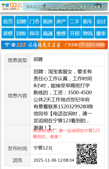 招聘:淘宝客服女,要求有责任心工作认真,工作时间8小时,能接受早晚班打字熟练的,工资:3500-4500公休2天工作地点世纪华府有意着联系15203299280微信同号 【电话咨询时,请一定说明在宁晋123看到的,谢谢!】 |
