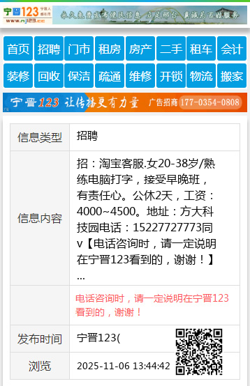 | 防骗提醒: | 宁晋123(www.nj123.cc)提醒您:手工活、网络兼职、刷单,都是骗子!凡以各种名义收取费用的都是骗子!找工作是往兜里挣钱,让你往外掏钱的都是骗子!异地招聘请提高警惕,谨防诈骗! |