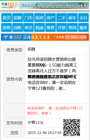 | 防骗提醒: | 宁晋123(www.nj123.cc)提醒您:手工活、网络兼职、刷单,都是骗子!凡以各种名义收取费用的都是骗子!找工作是往兜里挣钱,让你往外掏钱的都是骗子!异地招聘请提高警惕,谨防诈骗! |