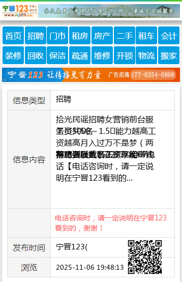 | 防骗提醒: | 宁晋123(www.nj123.cc)提醒您:手工活、网络兼职、刷单,都是骗子!凡以各种名义收取费用的都是骗子!找工作是往兜里挣钱,让你往外掏钱的都是骗子!异地招聘请提高警惕,谨防诈骗! |