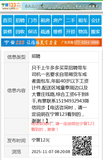 只干上午多多买菜招聘带车司机一名要求自带厢货车或者面包车,年龄40岁以下工资计件,配送区域童泰周边以及大曹庄线路,综合工资6千到8千,有意联系15194932943微信同步 【电话咨询时,请一定说明在宁晋123看到的,谢谢!】 |