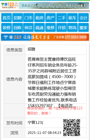 若晟商贸主营康师傅饮品旺仔系列招车销业务员年龄25-35岁之间县城附近居住工资底薪加提成(4500~7000)节假日福利工作地点宁晋县城要求能熟练驾驶小型厢货车吃苦耐劳沟通能力强有销售工作经验者优先.联系电话15833297307, 【电话咨询时,请一定说明在宁晋123看到的,谢谢!】 |