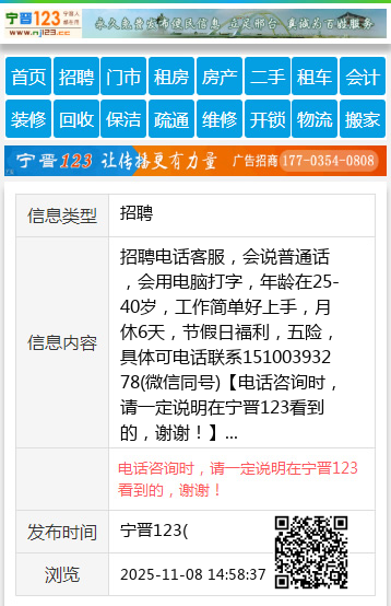 招聘电话客服,会说普通话,会用电脑打字,年龄在25-40岁,工作简单好上手,月休6天,节假日福利,五险,具体可电话联系15100393278(微信同号) 【电话咨询时,请一定说明在宁晋123看到的,谢谢!】 |