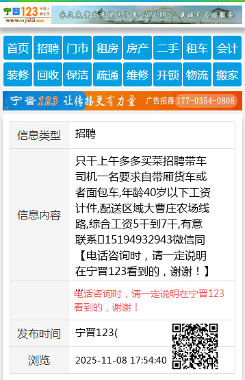 只干上午多多买菜招聘带车司机一名要求自带厢货车或者面包车,年龄40岁以下工资计件,配送区域大曹庄农场线路,综合工资5千到7千,有意联系15194932943微信同 【电话咨询时,请一定说明在宁晋123看到的,谢谢!】 |
