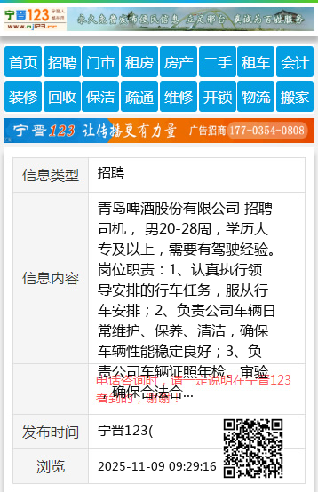 青岛啤酒股份有限公司 招聘司机, 男20-28周,学历大专及以上,需要有驾驶经验。岗位职责:1、认真执行领导安排的行车任务,服从行车安排;2、负责公司车辆日常维护、保养、清洁,确保车辆性能稳定良好;3、负责公司车辆证照年检、审验,确保合法合规;4、负责公司车辆违章情况的跟进处理;5、车辆费用的控制与报销;6、完成领导安排的其他任务。