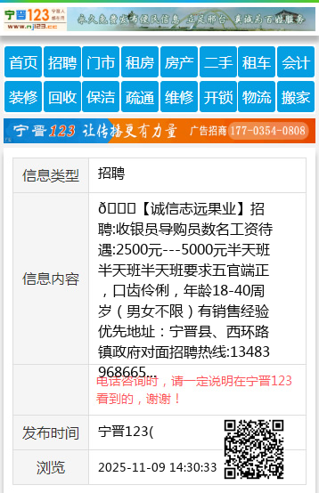 | 防骗提醒: | 宁晋123(www.nj123.cc)提醒您:手工活、网络兼职、刷单,都是骗子!凡以各种名义收取费用的都是骗子!找工作是往兜里挣钱,让你往外掏钱的都是骗子!异地招聘请提高警惕,谨防诈骗! |