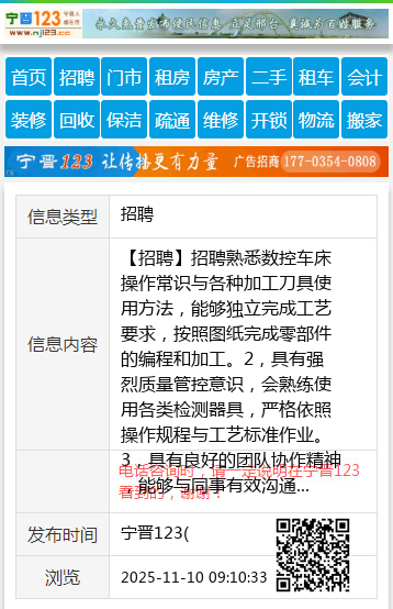 招聘熟悉数控车床操作常识与各种加工刀具使用方法,能够独立完成工艺要求,按照图纸完成零部件的编程和加工。2,具有强烈质量管控意识,会熟练使用各类检测器具,严格依照操作规程与工艺标准作业。3,具有良好的团队协作精神,能够与同事有效沟通,共同解决问题工资待遇是7000-10000联系电话1500704769115227331691 【电话咨询时,请一定说明在宁晋123看到的,谢谢!】 |