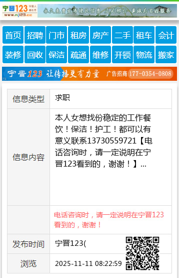 本人女想找份稳定的工作餐饮!保洁!护工!都可以有意义联系13730559721