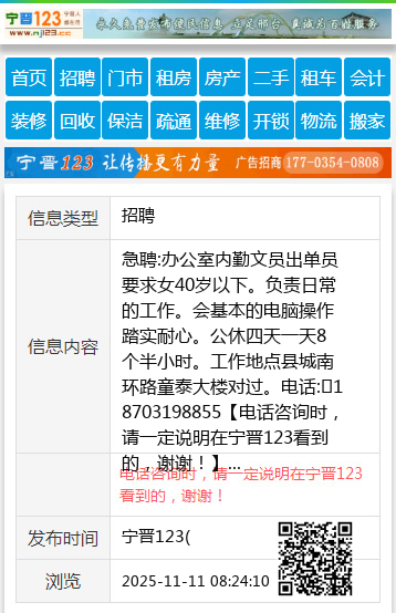 | 防骗提醒: | 宁晋123(www.nj123.cc)提醒您:手工活、网络兼职、刷单,都是骗子!凡以各种名义收取费用的都是骗子!找工作是往兜里挣钱,让你往外掏钱的都是骗子!异地招聘请提高警惕,谨防诈骗! |