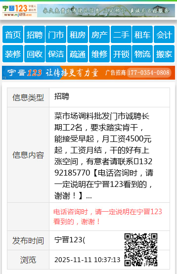 | 防骗提醒: | 宁晋123(www.nj123.cc)提醒您:手工活、网络兼职、刷单,都是骗子!凡以各种名义收取费用的都是骗子!找工作是往兜里挣钱,让你往外掏钱的都是骗子!异地招聘请提高警惕,谨防诈骗! |