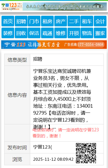 宁晋乐宝达商贸诚聘司机兼业务员3名,男女不限,从事过相关行业,优先录用。基本工资加提成以及绩效每月综合收入4500➕上不封顶地址:东南汪电话:13400192795 【电话咨询时,请一定说明在宁晋123看到的,谢谢!】 |